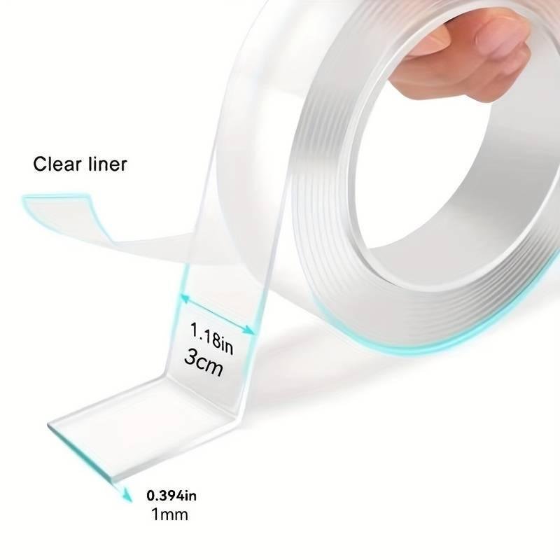 Tvåsidig dubbelhäftande nanotejp som verkligen har smart objektiv som om du vill fästa kabel, målning, affisch eller något annat som behöver dubbelhäftande tejp så kan du använda det för ett bra resultat. Välj bara längden på tejpen och applicera på ytan för användning.