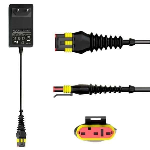 Universell laddare för 28V-batterier, kompatibel med Husqvarna Automower 105, 310 och 315X samt McCulloch Rob R800 och Gardena R38Li/Sileno robotgräsklippare. Laddaren kopplas direkt till roboten och fungerar som ersättning för originaltillbehöret. Kabellängd: 12 cm. Perfekt för stabil och effektiv strömförsörjning.