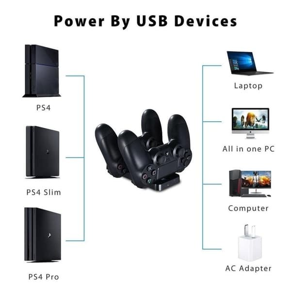 Ladda upp till två handkontroller samtidigt – kompatibel med PS-4 / PS-4 Slim / PS-4 Pro.