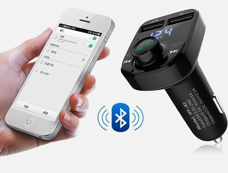 FM-sändare med Bluetooth för överföring av musik och handsfree