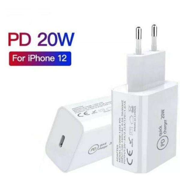 iPhone laddare för Apple 11/12/13 USB-C strömadapter 20W PD Vit