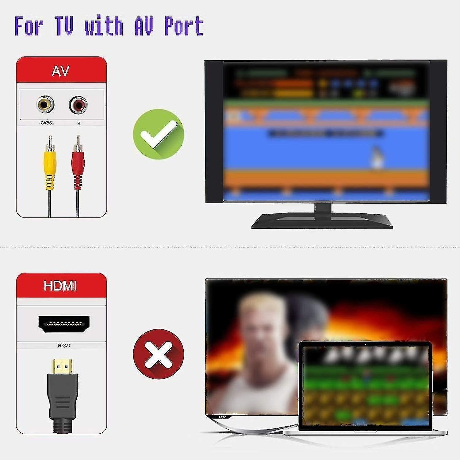 via en AV-kabel (Audio/Video), vilket ger en enkel installation och snabb uppstart. - Kontroller: Två handkontroller medföljer, vilket gör att två spelare kan spela samtidigt.