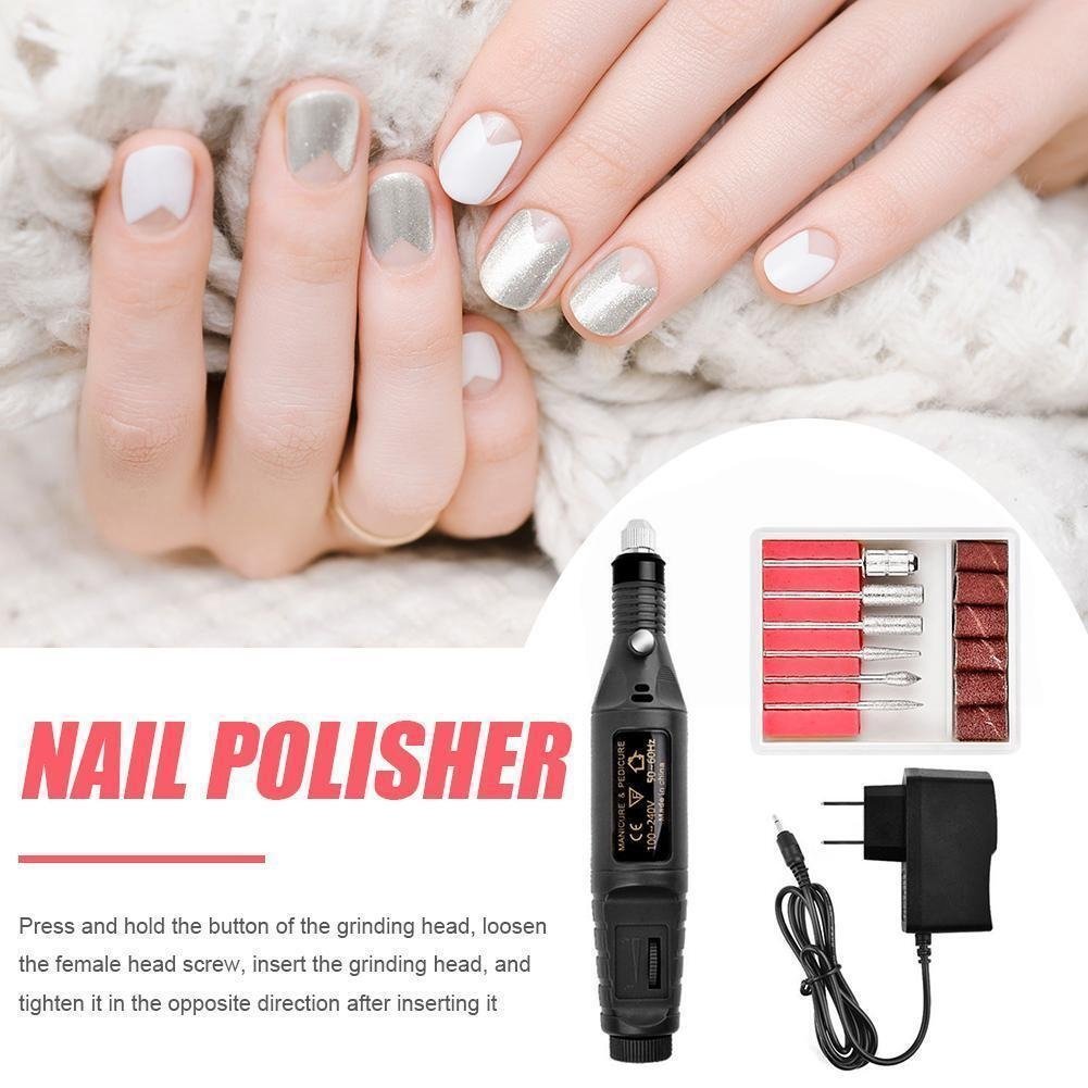 Elektrisk nagelfil som hjälper till att hålla naglarna i ett vackert utseende, den kommer med 6 bitar och 6 sandpapper. Det kan användas för nagelkonst, manikyr och pedikyr också.