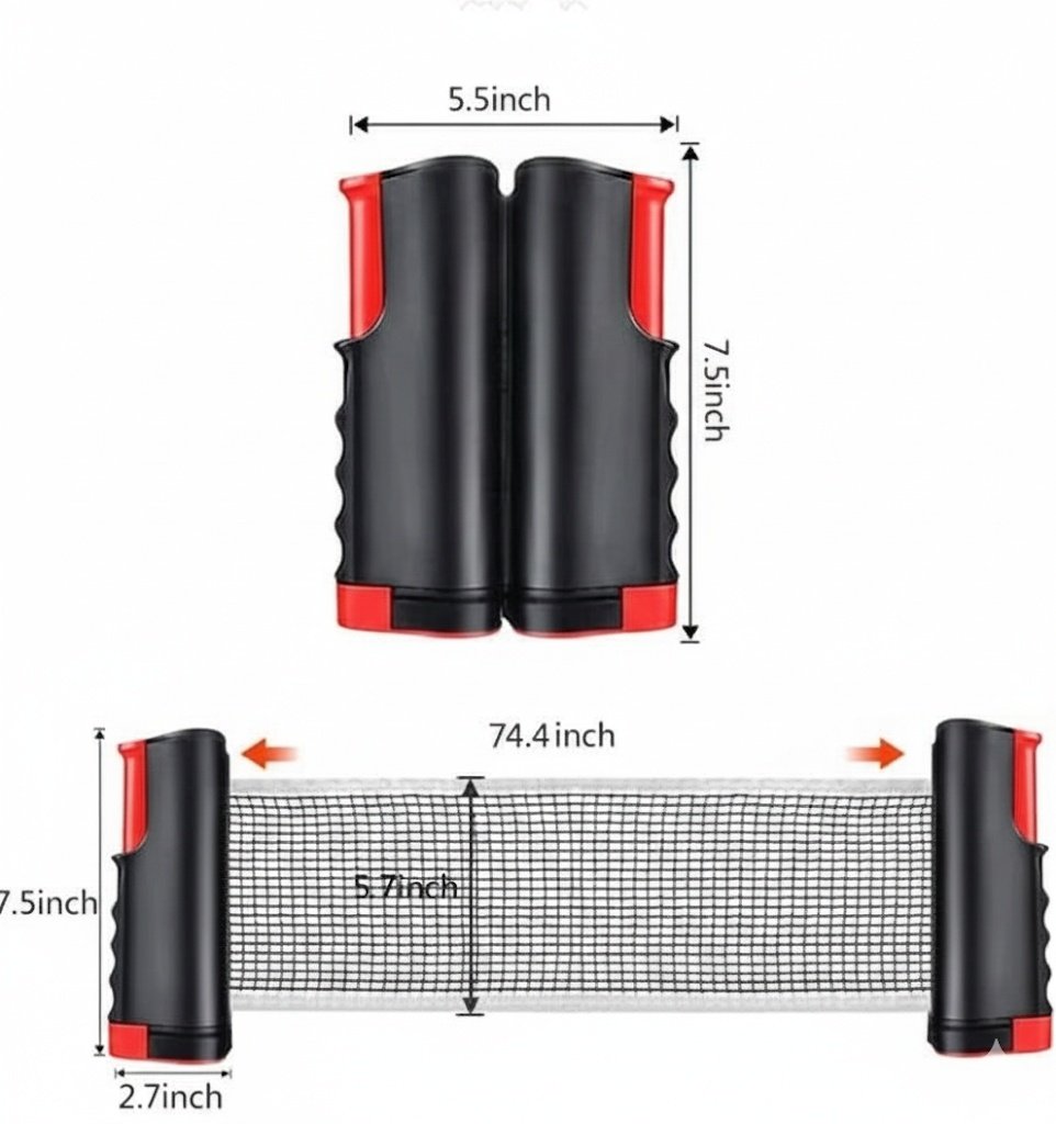 The net fits most table types up to 180 cm in width and 4.4 cm in thickness.