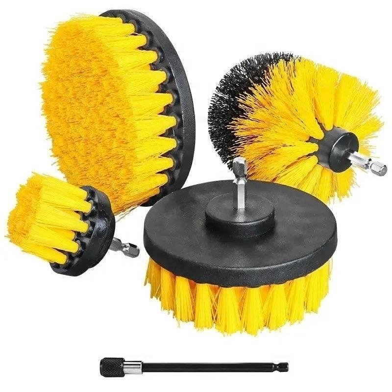 Fyra olika storlekar av borstar som du kan använda med borrmaskin eller skruvmejsel, enkelt monterade och redo att rengöra till exempel badkar, dusch, toalett, kök, bilbarnstol och mycket annat.