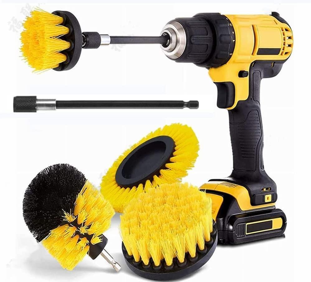 Fyra olika storlekar av borstar som du kan använda med borrmaskin eller skruvmejsel, enkelt monterade och redo att rengöra till exempel badkar, dusch, toalett, kök, bilbarnstol och mycket annat.